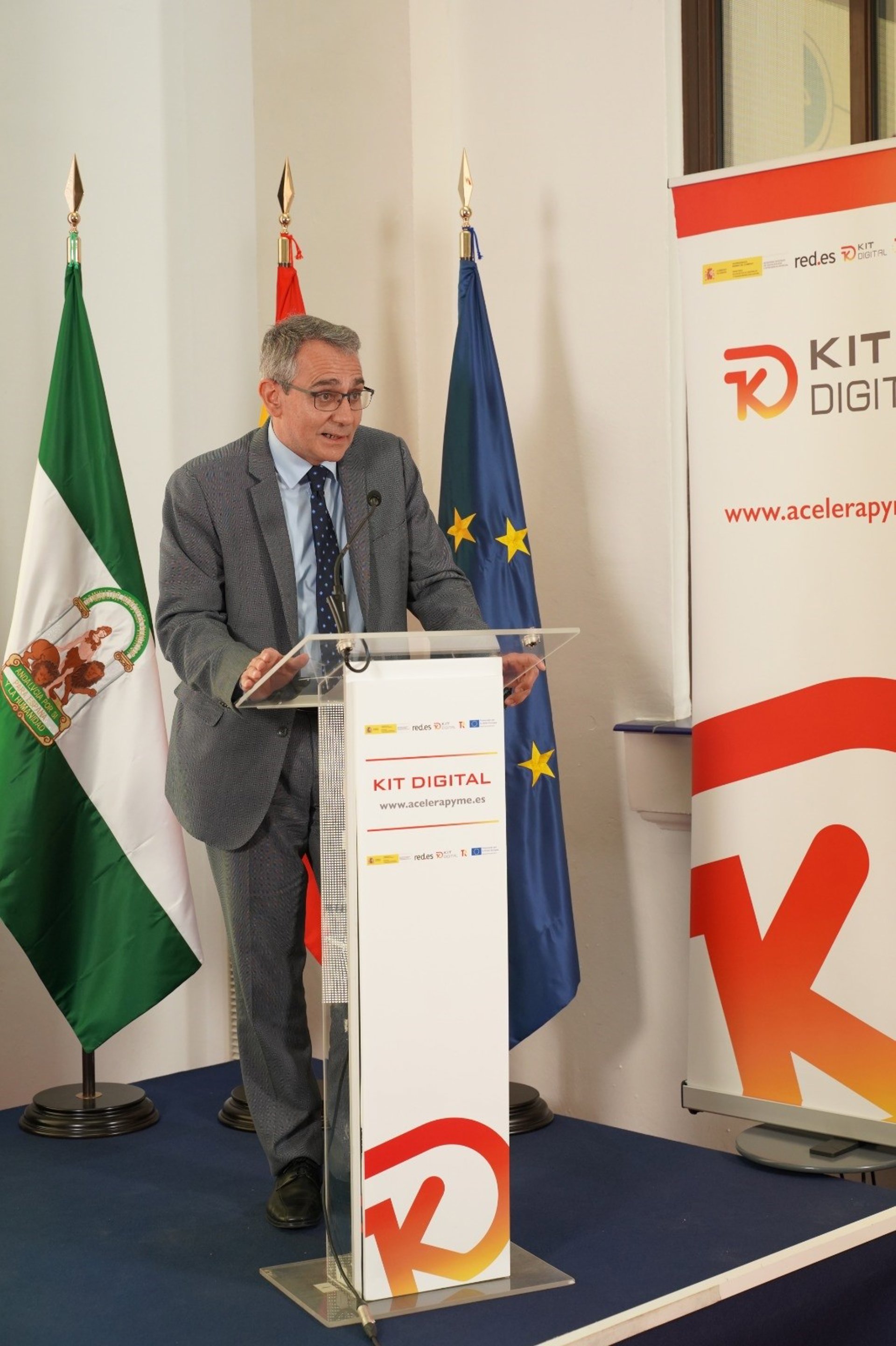 El director general de Red.es, entidad adscrita al Ministerio de Asuntos Económicos y Transformación Digital a través de la Secretaría de Estado de Digitalización e Inteligencia Artificial, Alberto Martínez, y el alcalde de Málaga, Francisco de la Torre, han clausurado en Málaga la jornada de presentación de Kit Digital, un programa de ayudas impulsado por el Gobierno de España para promover la digitalización de pequeñas empresas, microempresas y autónomos, con el fin de contribuir a modernizar el tejido productivo español.