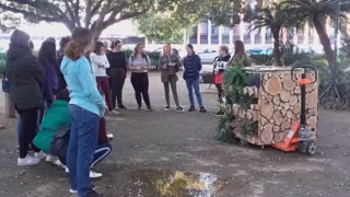 En el marco de la visualización del programa, un grupo de cinco alumnas de la Facultad de Bellas Artes, miembros del proyecto, presentaron la maqueta del prototipo de Fraterni-Lab, durante su clase de escultura en el jardín de la Facultad de Bellas Artes.