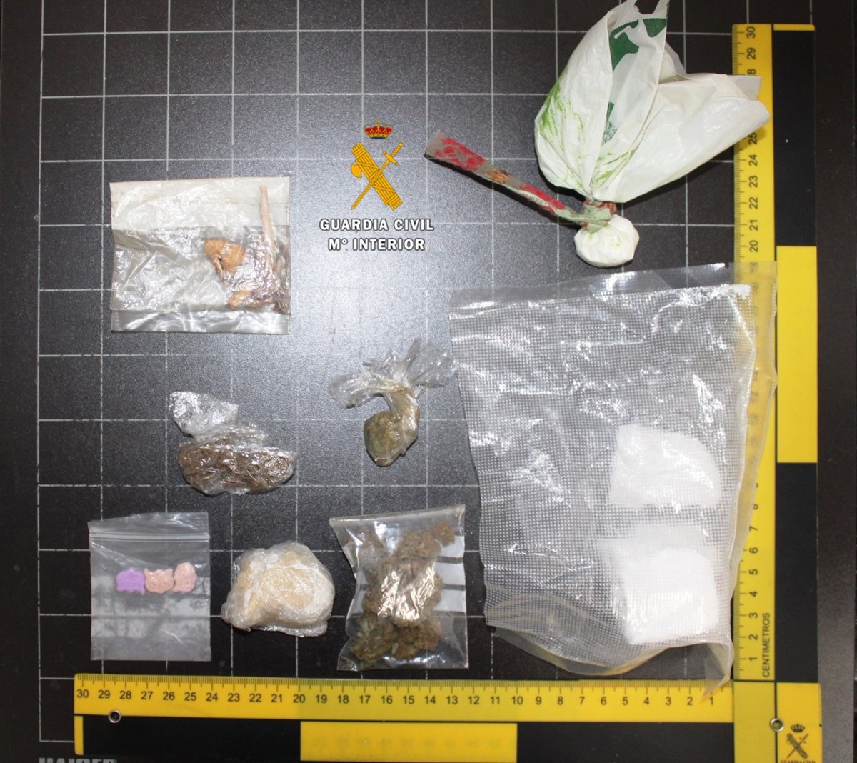 En el registro de la misma fueron intervenidas numerosas dosis dispuestas para su venta de cocaína, marihuana, hachís, speed, éxtasis y hogos alucinógenos, además de dinero en efectivo y utensilios para la distribución de drogas. Como consecuencia de la investigación también fueron bloqueadas cautelarmente las cuentas bancarias de los detenidos y un total de 37 cuentas de juego y apuestas online.