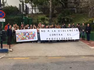 Los docentes han portado dos pancartas con los mensajes 'No a la violencia contra el profesorado' y 'Unidos por la Paz'. También la Asociación de Madres y Padres de Alumnos del colegio ha manifestado su apoyo a los profesores.