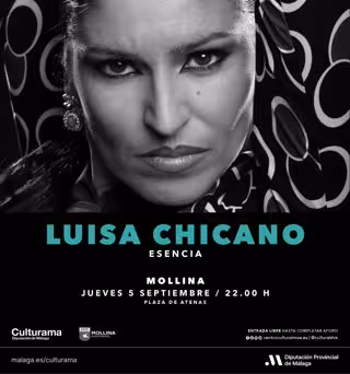 El jueves 5 de septiembre, Luisa Chicano llevará su espectáculo flamenco 'Esencia' a Mollina. Actuará acompañada por tres cantaores y un guitarrista en la Plaza de Atenas, a partir de las 22,00 horas, la entrada es libre hasta completar aforo. Luisa Chicano es una profesional del baile flamenco que atesora raza, tradición e intensidad en sus actuaciones y ha mostrado su arte por España, Europa o Japón, entre otros destinos.
