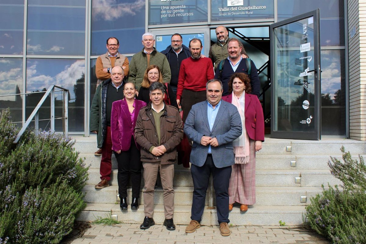 Los Grupos de Desarrollo Rural Antequera, Axarquía, Sierra Norte de Málaga, Valle del Guadalhorce, Sierra de las Nieves y Serranía de Ronda y Guadalteba que han participado en una reunión de coordinación con la Asociación de Desarrollo Rural de Andalucía - GDR GUADALHORCE