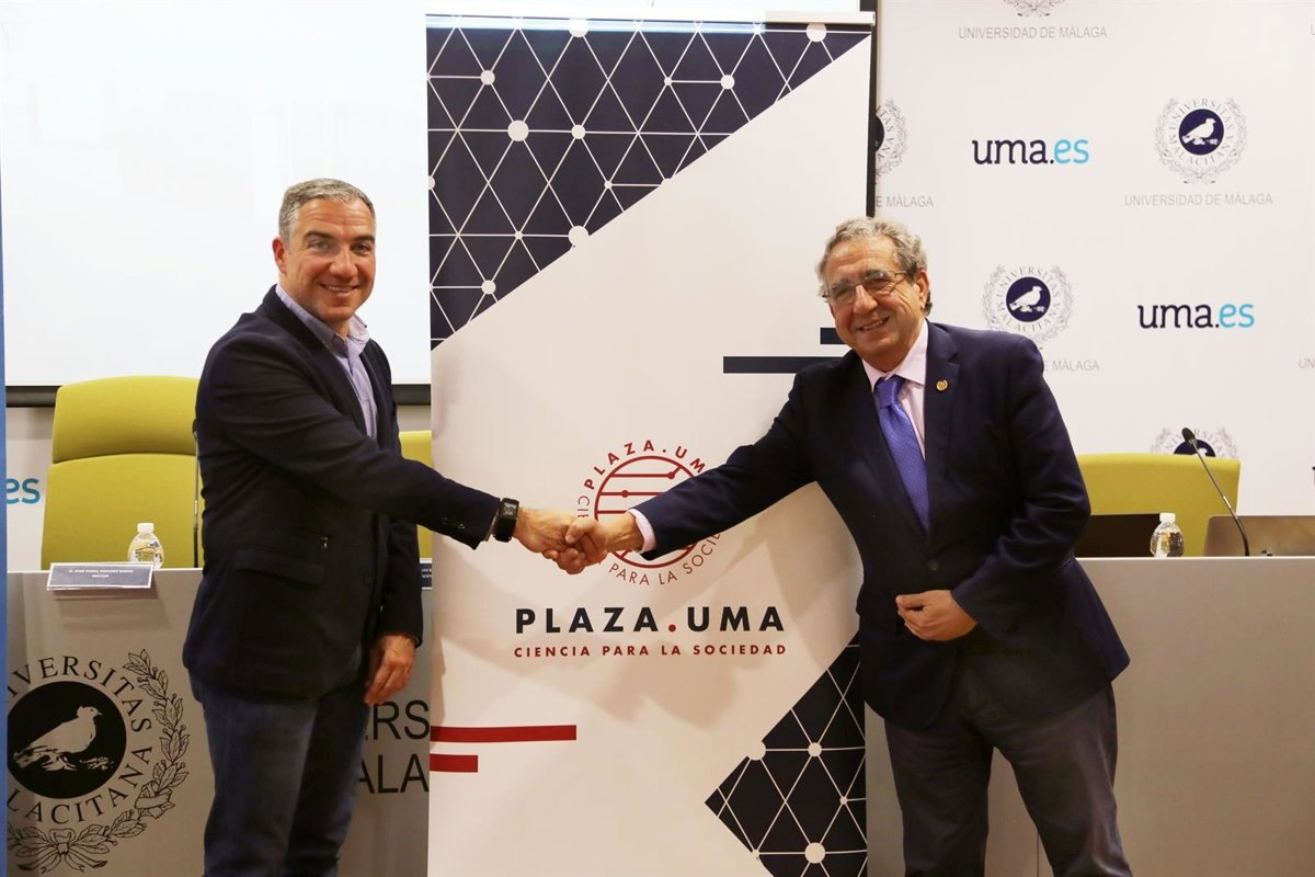 El Rectorado ha acogido este martes la presentación del proyecto 'Plaza UMA. Ciencia para la Sociedad', una iniciativa creada por la Universidad de Málaga (UMA), que nace con la colaboración de la Diputación Provincial y que persigue poner el conocimiento al servicio de la provincia.