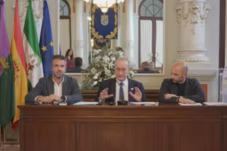 El alcalde de Málaga, Francisco de la Torre, junto a los concejales de Ordenación del Territorio, Raúl López, y del distrito Málaga Este, Carlos Conde, en rueda de prensa - AYUNTAMIENTO