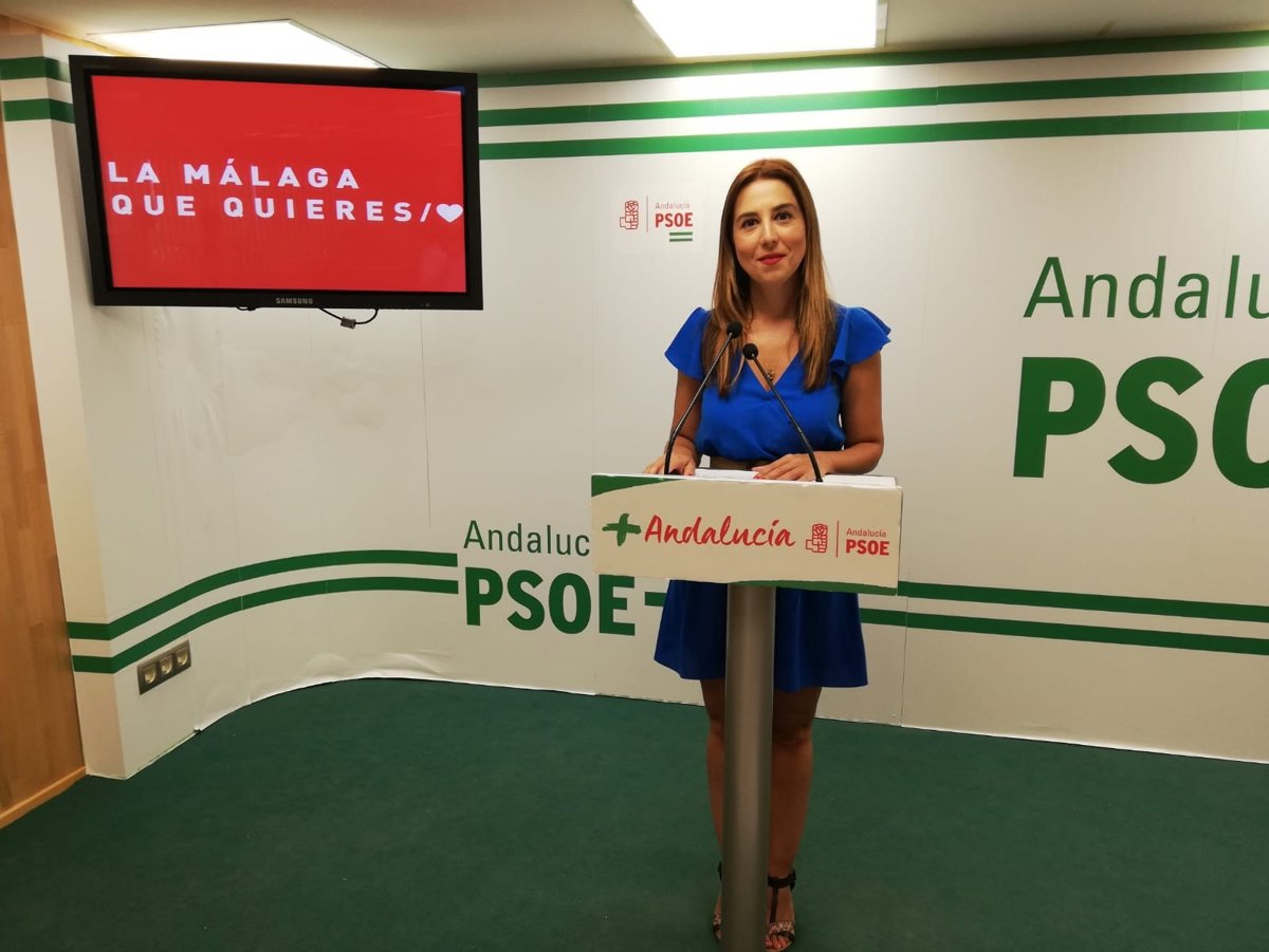 La secretaria de Políticas Migratorias y Andaluces en el Exterior del PSOE de Andalucía, Beatriz Rubiño, en rueda de prensa. - PSOE