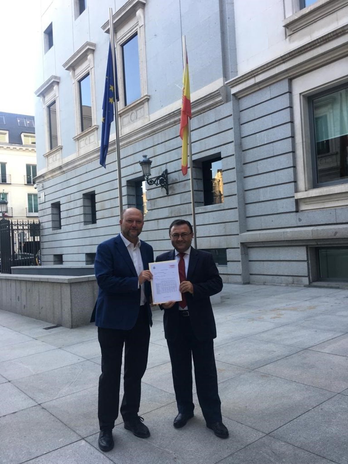 El coordinador de la interparlamentaria del PSOE-Andalucía y diputado por Sevilla, Antonio Pradas y el diputado por Málaga Miguel Ángel Heredia han criticado este miércoles que los retrasos del AVE Málaga-Madrid con el anterior Gobierno del PP "supusieron 3,12 millones de euros de indemnizaciones a las arcas públicas; en concreto, desde 2012 hasta el 27 de mayo de 2018".