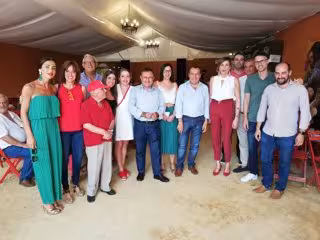 El secretario general del PSOE en Málaga, José Luis Ruiz Espejo, en un encuentro con militante y simpatizantes en la Feria de Ronda. - PSOE