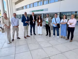 El secretario general del PSOE de Málaga y parlamentario andaluz, Josele Aguilar, junto a alcaldes del PSOE junto al Hospital de Ronda - PSOE