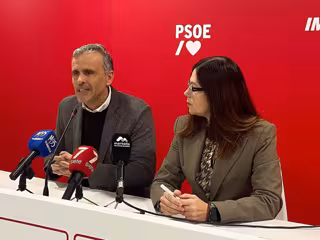 El vicesecretario general del PSOE de Málaga y diputado en el Congreso, Ignacio López, y la también diputada en el Congreso, Isabel Pérez, en rueda de prensa - PSOE