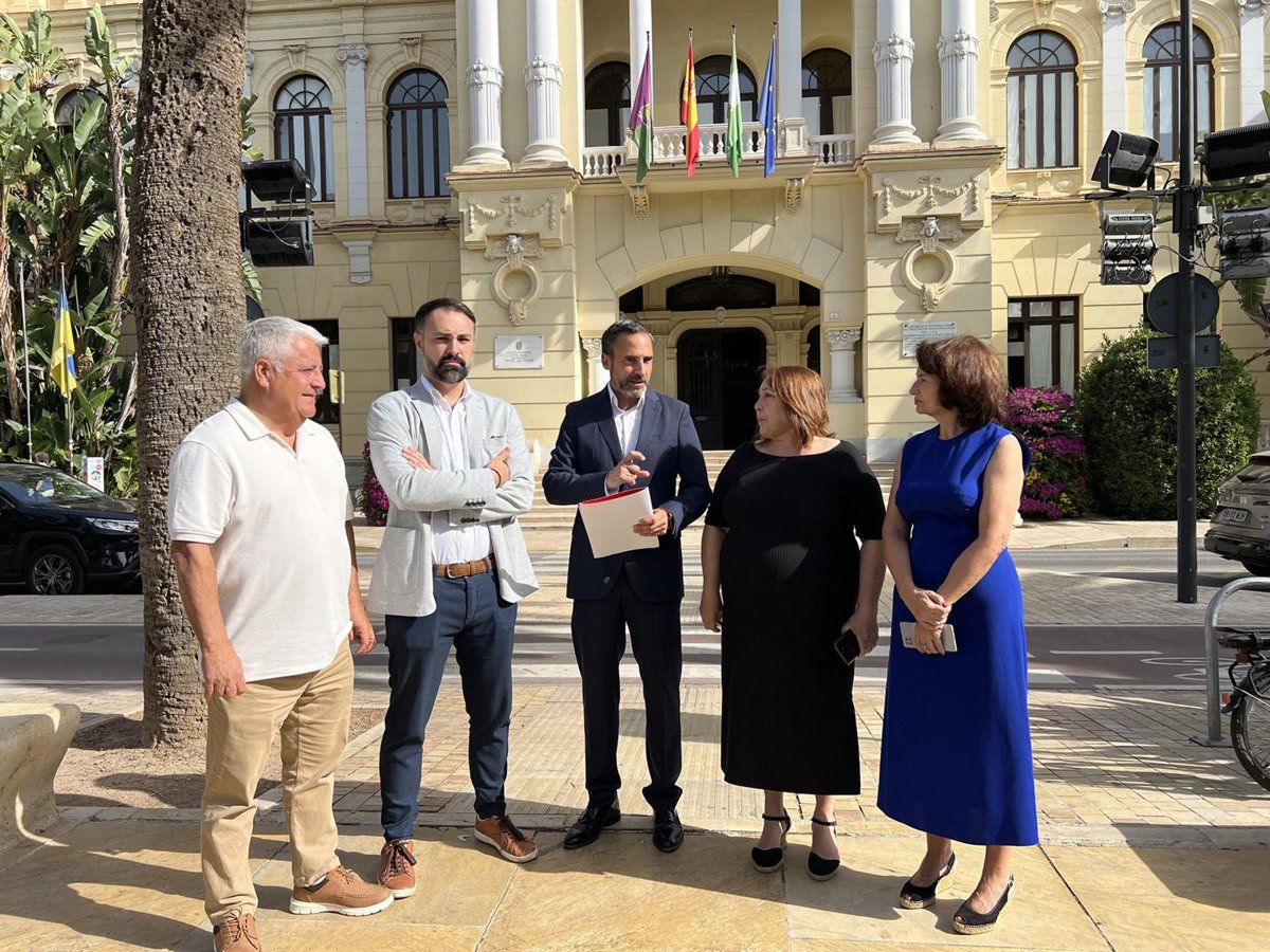 El portavoz del PSOE en el Ayuntamiento de Málaga, Daniel Pérez (centro), con otros concejales socialistas. - PSOE DE MÁLAGA