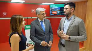 El secretario general del PSOE de Málaga, Josele Aguilar, junto al secretario de Movilidad de la ejecutiva provincial, Daniel Gómez, y la diputada provincial, Isabel Ruiz. - PSOE MÁLAGA