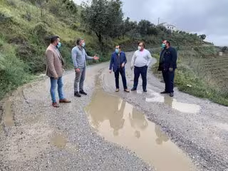 El secretario general del PSOE de Málaga y parlamentario andaluz, José Luis Ruiz Espejo, junto a los alcaldes de Iznate, Gregorio Campos; Almáchar, Antonio Yuste, y El Borge, Raúl Vallejo, y el diputado provincial José María Jiménez han reclamado al Agobierno andaluz y a la Diputación provincial el arreglo del Camino de la Cornisa de los Montes de Málaga.
