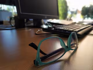 Gafas cerca de un ordenador - QUIRÓNSALUD MARBELLA