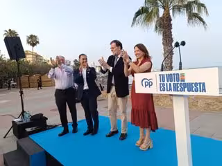 El expresidente del Gobierno, Mariano Rajoy; la presidenta del PP provincial de Málaga, Patricia Navarro; el alcalde de la ciudad, Juan Antonio Lara; y el presidente del PP local, Enrique Moya, en una acto electoral de cara a las elecciones europeas. - PP