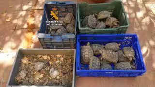 La Guardia Civil ha recuperado 40 ejemplares de tortuga mora que fueron abandonados en una calle cercana a la plaza de toros de La Malagueta, en la capital. Esta especie está catalogada como en peligro de extinción.