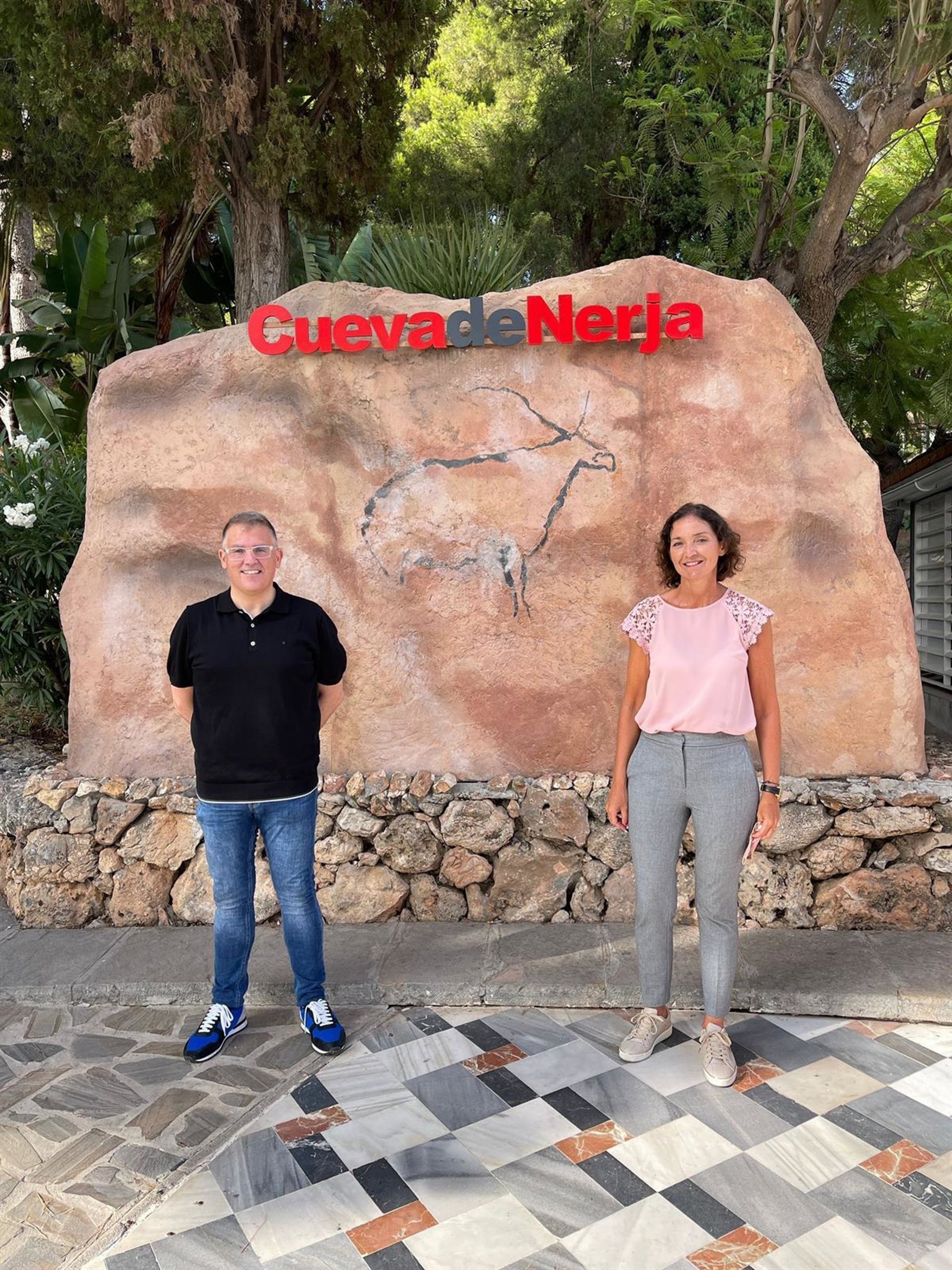 La ministra de Industria, Comercio y Turismo, Reyes Maroto, y el gerente de la Cueva de Nerja, José María Domínguez, en la Cueva de Nerja - CUEVA DE NERJA