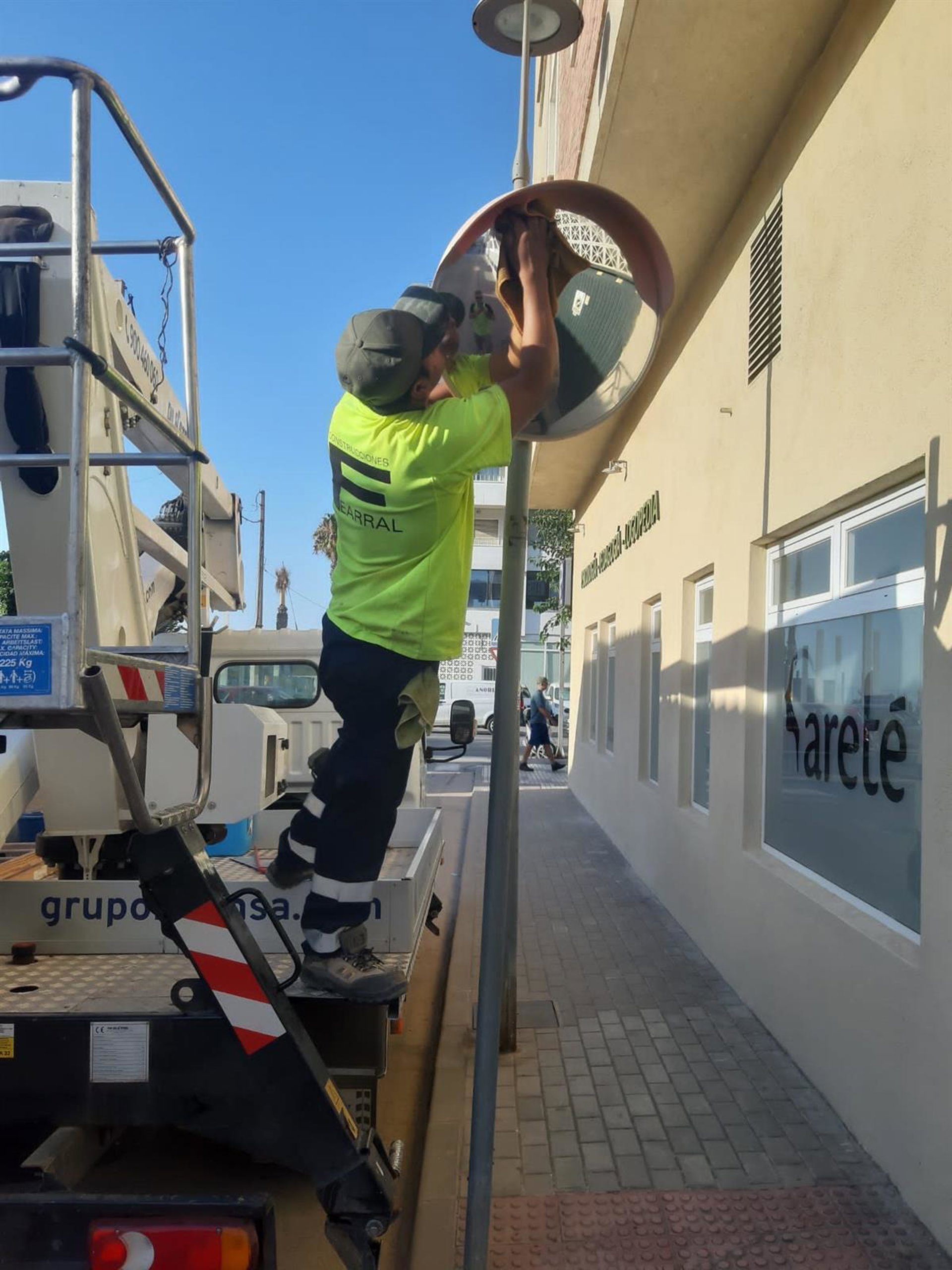 Las tareas se han centrado en elementos como señales verticales, semáforos, espejos de tráfico, pérgolas, bancos, papeleras, en los que se acumulaba la suciedad.