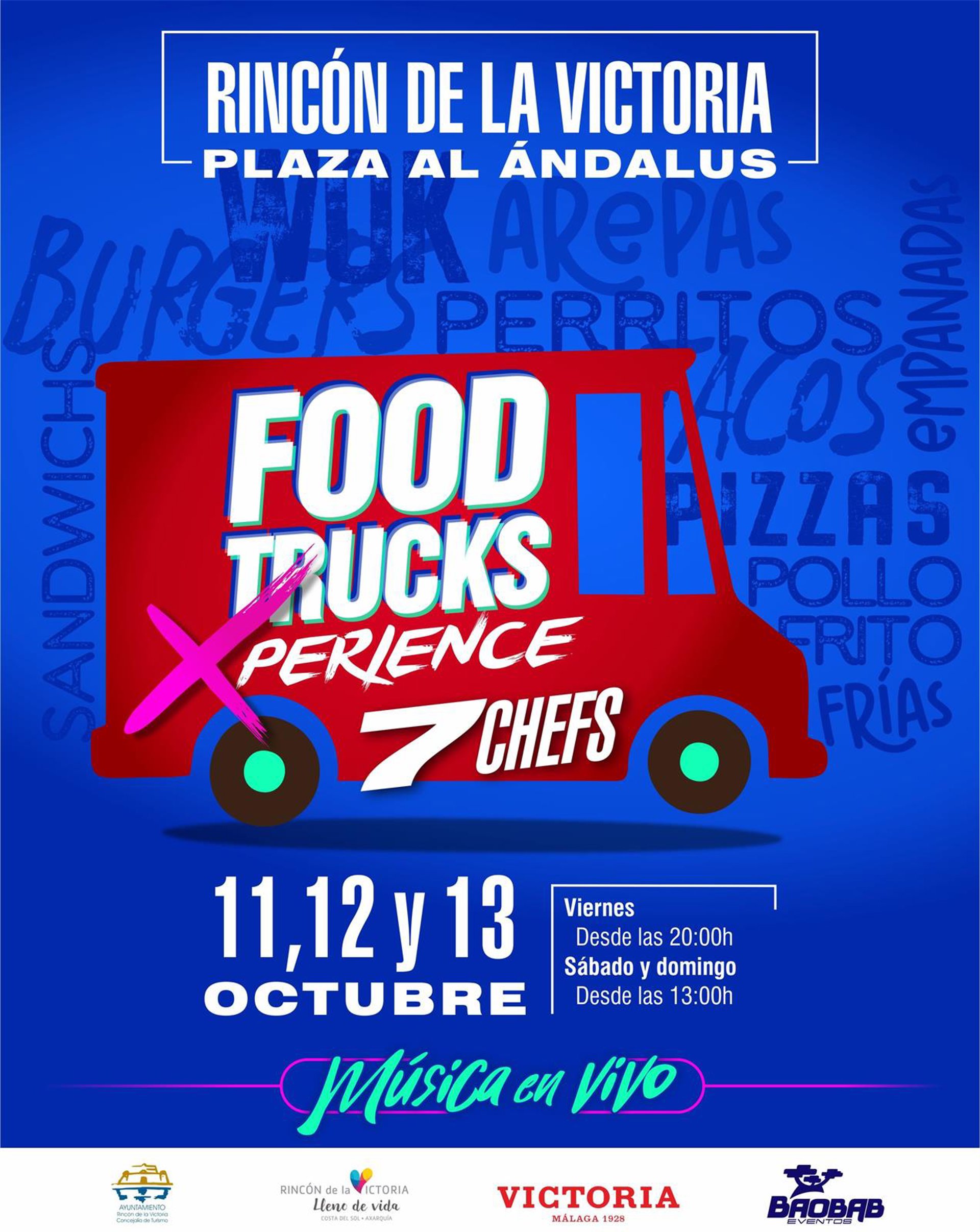 Los chefs sobre ruedas de la Foodtrucks Xperience Rincón de la Victoria serán Arepita, Trick Truck, La Bohemia, Wok and Roll, La Porteña, Guaraní, Mr Hot Dog que ofrecerán arepas, pulled pork, comida mexicana, wok, empanadas, carne y hot dogs.