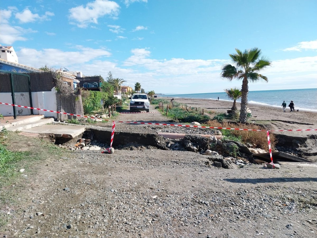 Los fenómenos meteorológicos adversos provocaron importantes daños a lo largo de todo el litoral del municipio. Entre las afectaciones registradas se encuentran escorrentías que deterioraron el itinerario peatonal de la senda litoral, aterramientos en desembocaduras de arroyos, descalce de elementos de contención e infraestructuras públicas, así como daños en equipamientos de playa y en la barandilla de protección situada junto a la hornacina de la Virgen del Carmen.