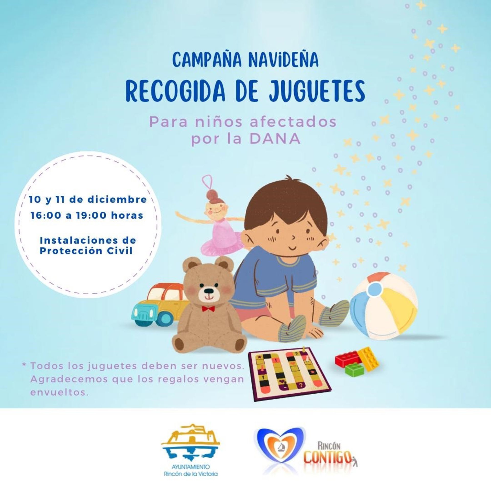 Cartel de la campaña de recogida de juguetes para niños de familias afectadas por la DANA en Rincón de la Victoria. - AYTO. RINCÓN DE LA VICTORIA
