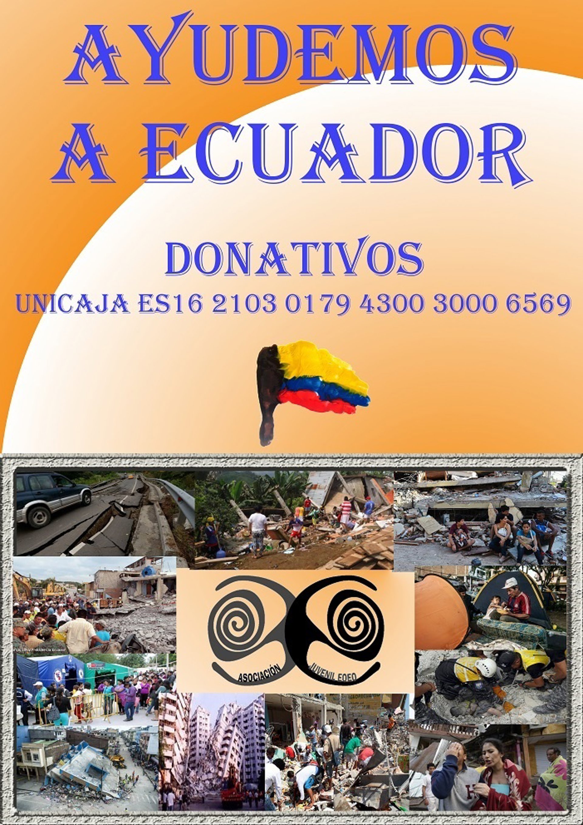 Desde principios de julio están acompañando a asociaciones de cooperación y grupos comunales de Ecuador y transfiriéndoles todo su conocimiento y trabajando sobre el terreno, tanto en la capital, Quito, como en la zona más afectada por el sismo del pasado 16 de abril, con cientos de fallecidos y cuantiosos daños materiales. El número de cuenta bancaria para colaborar es: ES16 2103 0179 4300 3000 6569.