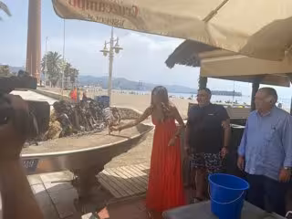 La candidata ha elegido para el fin de la campaña un chiringuito de la capital y un espeto así como con un encuentro con miembros de la directiva de la Asociación de Empresarios de Playas como homenaje al sector turístico, como "principal motor económico" de la provincia. También, como agradecimiento "al esfuerzo que han hecho estos empresarios durante la pandemia y ahora con la subida de precios".