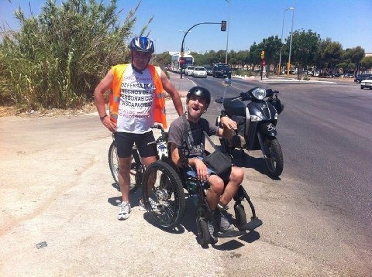 La ruta de ciclista iniciada este pasado miércoles por miembros de la Asociación Malagueña de Padres de Paralíticos Cerebrales (Amappace), liderada por su director y el vicepresidente, Domingo Collado y José Ángel Lobato --este último tiene parálisis cerebral--, respectivamente, que viajan en una bicicleta adaptada, tiene previsto llegar sobre las 12.00 horas de este lunes a Sevilla, donde harán entrega de las 3.481 firmas que ha reunido a lo largo del recorrido en apoyo a este colectivo.