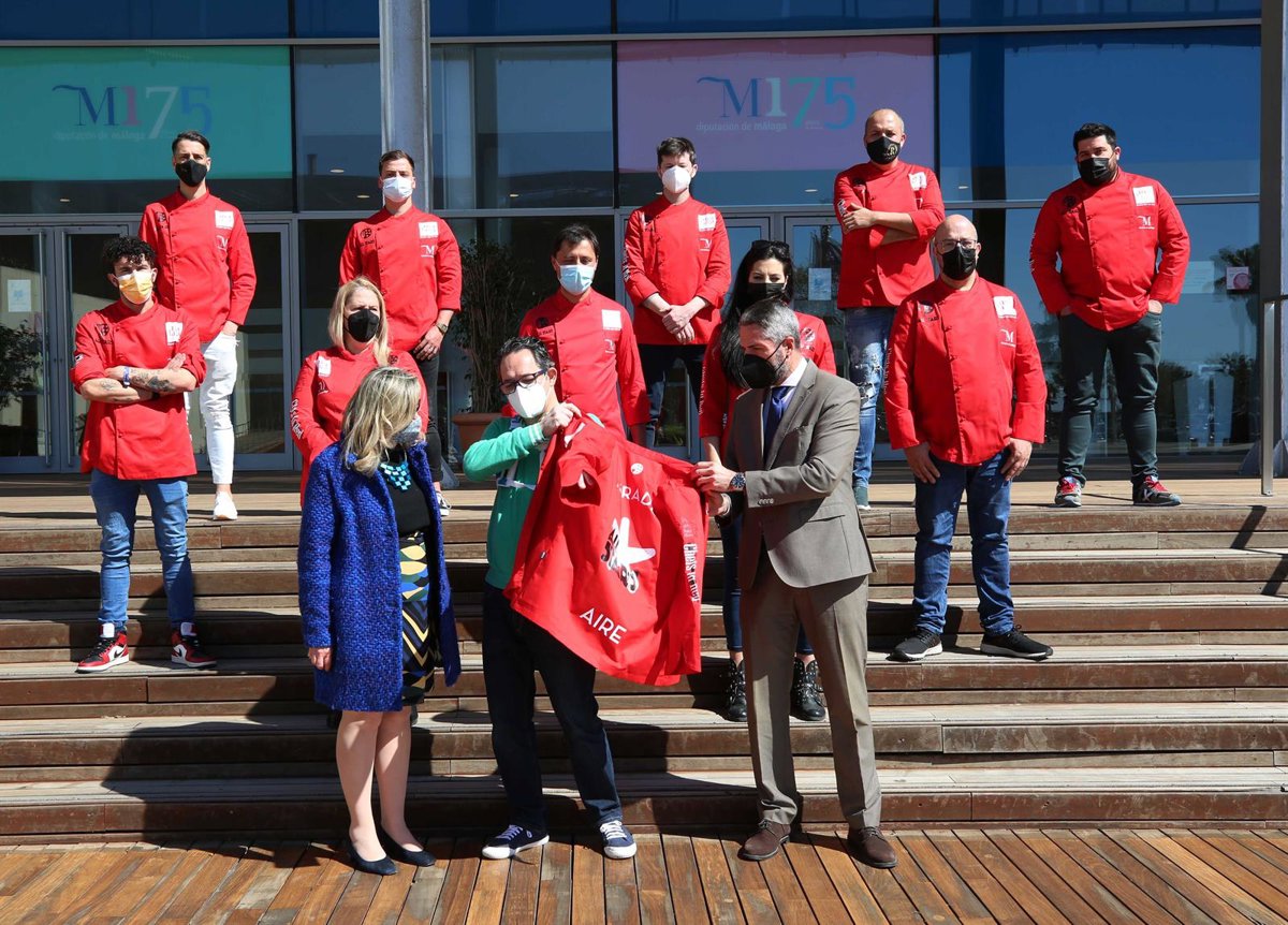 Se trata de la primera vez que se realiza esta entrega de chaquetas rojas en Málaga tras su presentación oficial en la Feria Internacional de Turismo de Madrid (Fitur). En todas las chaquetas, además del nombre del restaurante, luce el emblema de la marca agroalimentaria de la Diputación de Málaga.