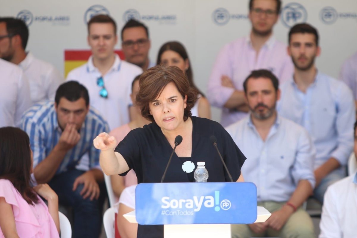 Por otro lado, Sáenz de Santamaría en su primer acto de campaña ha explicado "mi historia y viaje" en el PP, desde sus comienzos "de la mano de Mariano Rajoy", ya que "llevo con él trabajando 18 años" y "echo de menos que la primera, segunda y tercera llamada del día sea la llamada del presidente".