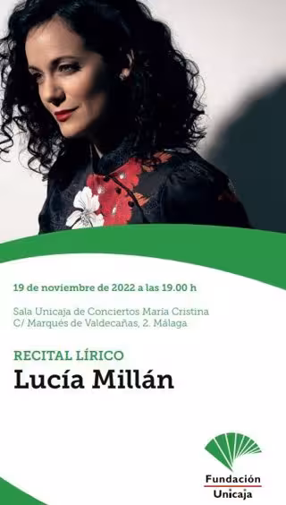 Fundación Unicaja ofrece un recital de canción lírica española a cargo de la soprano Lucía Millán, que tendrá lugar el próximo sábado 19 de noviembre en la Sala Unicaja de Conciertos María Cristina.