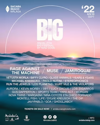 A los cabezas de cartel Muse y Jamiroquai se unió el pasado 22 de abril la banda internacional Rage Against The Machine. Han pasado 25 años desde que los angelinos no pisaban tierras andaluzas, "volviendo por todo lo alto en una de las dos únicas fechas que tendrán en nuestro país".