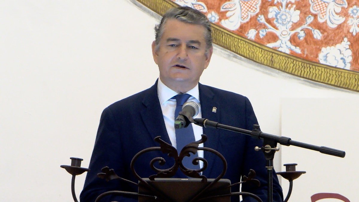 El consejero de Presidencia, Interior, Diálogo Social y Simplificación Administrativa de la Junta, Antonio Sanz, durante la entrega de los XXI Premios Andalucía Económica. - EUROPA PRESS