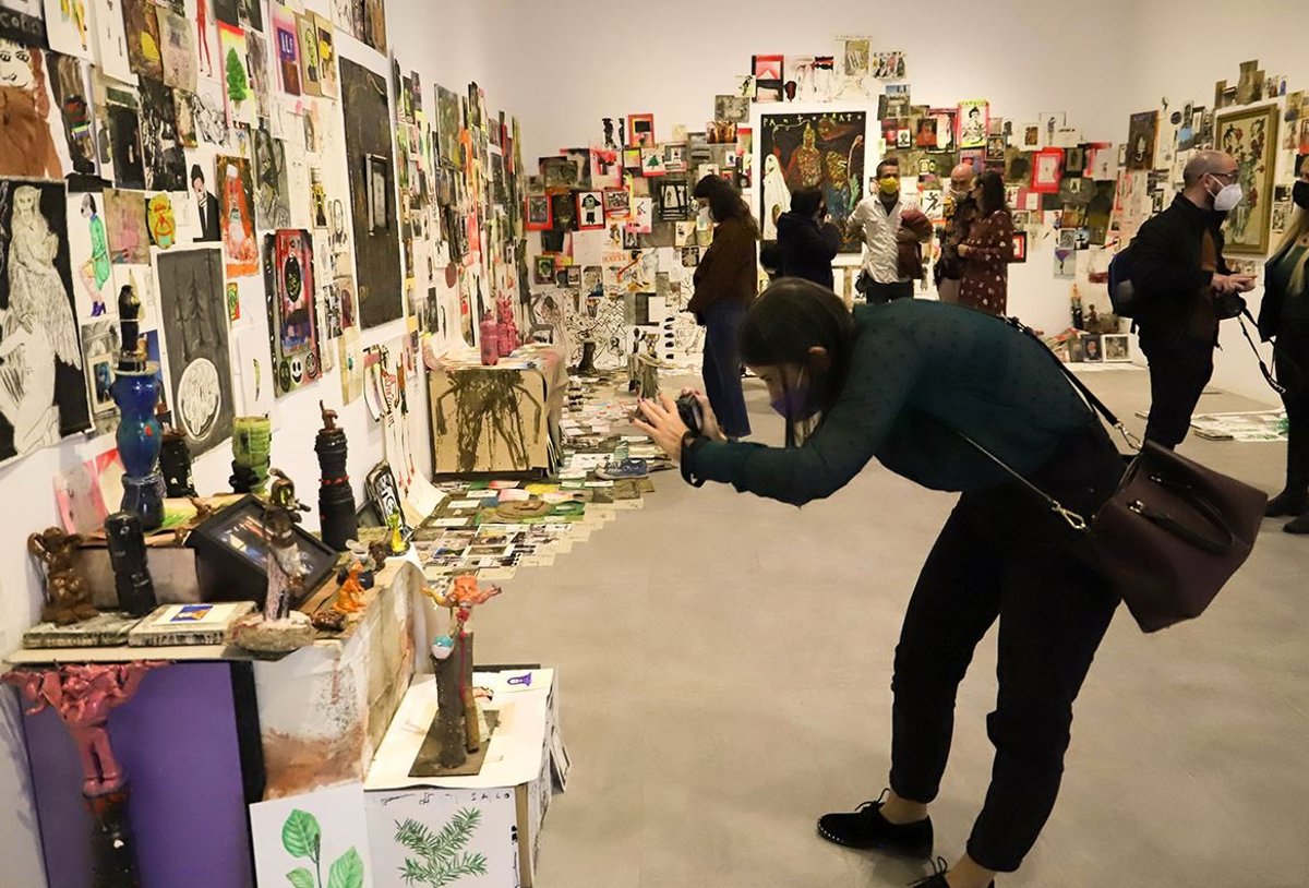 Más de mil piezas que conforman una instalación temporal y efímera con dibujos en su mayoría plasmados en folios blancos de diferentes tamaños y formatos, dispuestos a modo de mural continuo que ocupa todas las paredes del espacio expositivo, y cuyo montaje no volverá a repetirse una vez finalice la muestra.