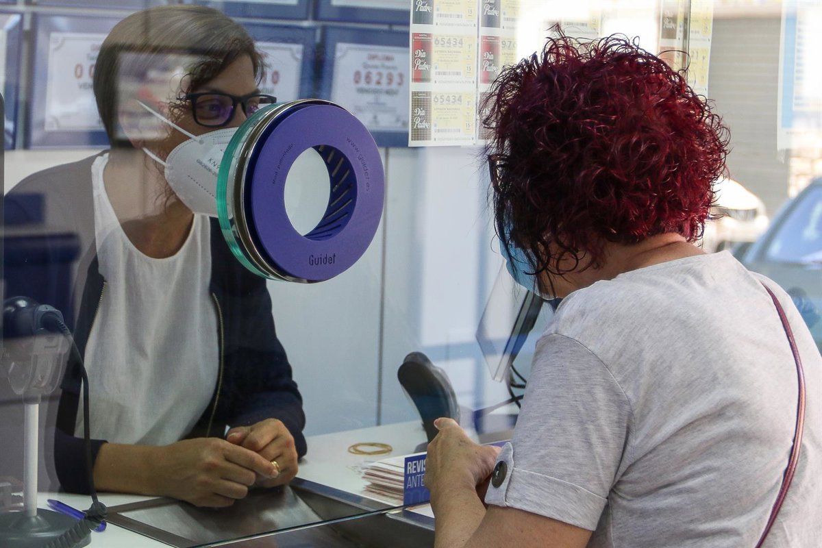 Archivo - Una lotera de una dministración atiende a una clienta - Iván Terrón - Europa Press - Archivo