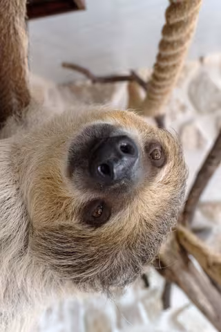 Los perezosos de dos dedos del zoo son macho y hembra (él llegó en 2022 y ella en 2023), y son pareja reproductora. Aproximadamente del tamaño y la forma de un perro pequeño, su cuerpo se compone de un cuello corto --solo seis o siete vértebras-- con cuatro extremidades largas de igual longitud, terminadas en dos garras curvas.