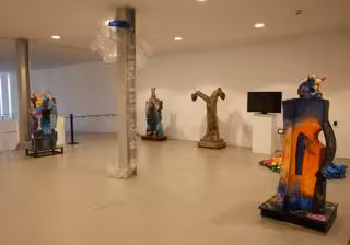 Pepe Chica, José Pereiro, Cristina Alcaraz, Tania A. Aves, Pedro Fernández Roales, Sergio Ferrero, Santiago Pidal, Sandra Martínez, José María Olid, Casa Peña, Ángeles Martínez, José M. Doña, Marta Pariente, José Marchá, Ana M Aguilar, Estrella Duarte, Alberto Sánchez, M Ángeles Cascado, Daniel Gil Broglio, ArTapones, y José Noel Pacheco, aportan esculturas y cerámica.