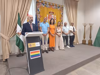 Al acto, celebrado en la Subdelegación del Gobierno en Málaga, han asistido miembros de distintos colectivos y entidades LGTBIQ+ de la provincia, que también han participado en la lectura de la Declaración Institucional aprobada por el Consejo de Ministros el pasado martes.