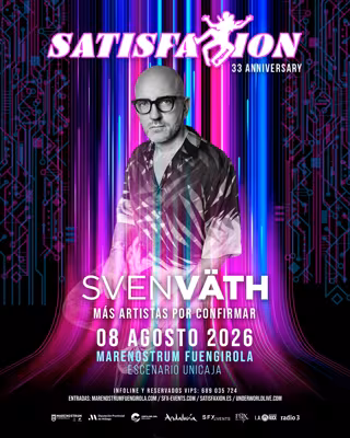 Con una trayectoria de más de cuarenta años, Sven Väth ha marcado la evolución de la música electrónica como dj, productor y promotor de clubes y sellos discográficos de referencia. Su participación en el evento de Fuengirola refuerza la apuesta de Satisfaxion por ofrecer un cartel que combine figuras legendarias con propuestas de alta calidad musical.