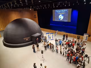 El Auditorio Edgar Neville de la Diputación de Málaga ha recibido este lunes al planetario gigante e itinerante que está recorriendo este curso escolar la provincia de Málaga para llegar a más de 7.500 alumnos bajo el título 'Mirando al cielo'.