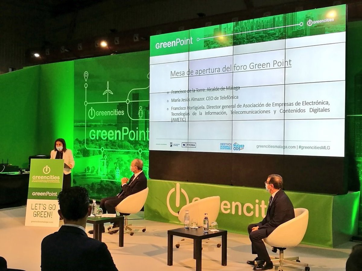 Telefónica ha participado en la undécima edición del Foro de Inteligencia y Sostenibilidad Urbana Greencities, que se celebra en Málaga este miércoles y jueves, para dar a conocer proyectos y soluciones que desarrolla en el ámbito de las smart cities ante el nuevo entorno post COVID.