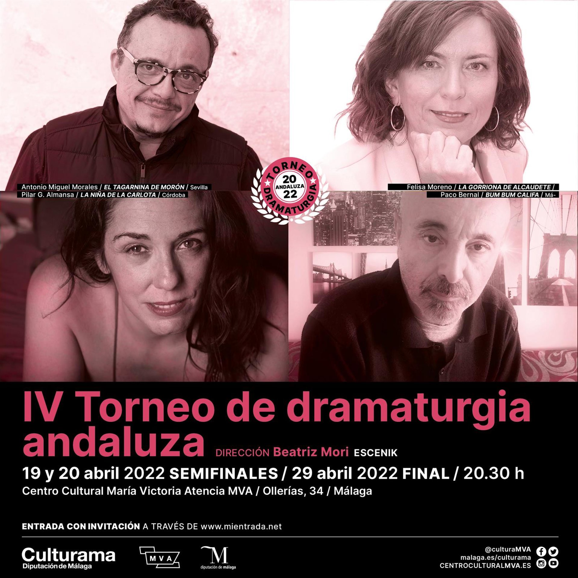 El auditorio del Centro Cultural María Victoria Atencia de la Diputación de Málaga acogerá un año más el Torneo de Dramaturgia de Andalucía, una iniciativa dirigida por Beatriz Mori que enfrentará a cuatro autores de teatro de toda la región en un ring de boxeo a modo de combate en el que ganará el mejor texto.