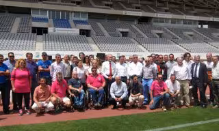De la Torre, acompañado por el presidente de la Diputación y 'número dos' de su candidatura, Elías Bendodo, ha utilizado el Estadio de Atletismo Ciudad de Málaga como escenario para presentar a deportistas y representantes de clubes y federaciones su programa electoral en materia deportiva.