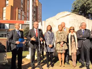 Tras la intervención del decano del Colegio de Abogados, se ha depositado ante el monumento la corona de laurel y la Banda Municipal de Música de Málaga ha interpretado los himnos de Andalucía y de España.