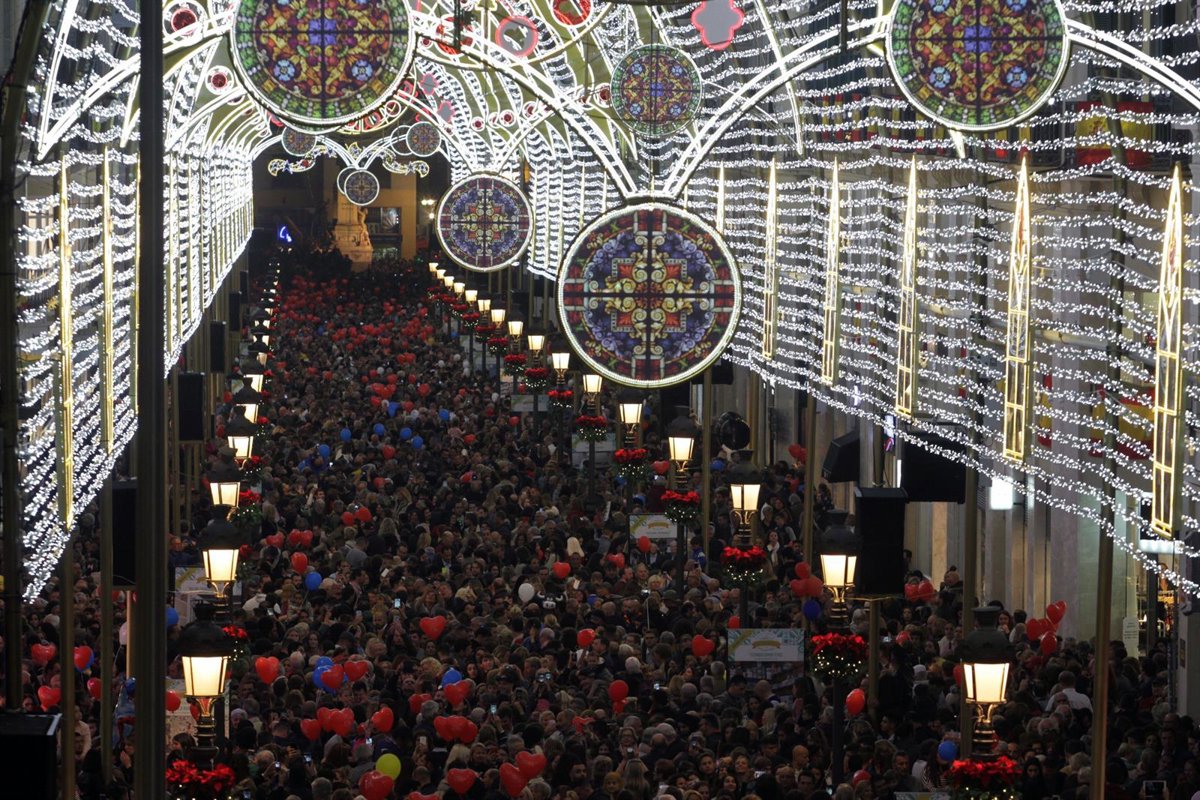 Este pasado viernes, la céntrica calle Larios inauguró el espectáculo de luz y de sonido. Este año, los destellos de luz en calle Larios van al ritmo de 'Wizards in Winter' (Magos en invierno) de Trans-Siberian Orchestra, 'Feliz Navidad' de Boney M y 'Christmas Festival' de The Boston Pops Orchestra.