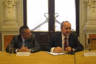 En plena polémica ante las discrepancias entre la Junta de Andalucía y el Ayuntamiento de Málaga por el metro, el alcalde, Francisco de la Torre, y el delegado territorial de Fomento y Vivienda, Manuel García Peláez, han coincidido este jueves en un acto. Mientras el primero ha tachado de "no afortunada" la frase, en defensa del trazado en superficie, del director general de Movilidad, José Luis Ordóñez, acerca de que "las personas no son topos", el representante del Ejecutivo andaluz ha reiterado que el ferrocarril urbano de la capital malagueña "tendrá el mismo trato que el de Sevilla".