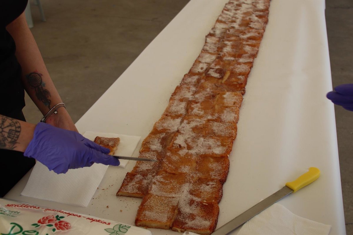 Para ello, según han detallado, deberán emplear unos 75 panes, unos 52 litros de leche, otros tantos de azúcar y unas 15 docenas de huevos; así como 26 naranjas, 13 limones y 52 palos de canela, para infusionar la leche y darle a la gran torrija esos aromas tan característicos.