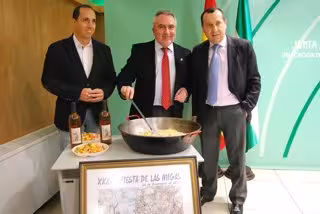 Acompañado por el alcalde de la localidad, Francisco Muñoz, y el concejal de Cultura y Fiestas, Juanma Cortés, el delegado ha dado a conocer el programa de actividades culturales, lúdicas y gastronómicas que tendrán lugar alrededor de los productos típicos de la zona y de su plato estrella: las migas, acompañadas de ensalada arriera y vino del terreno.