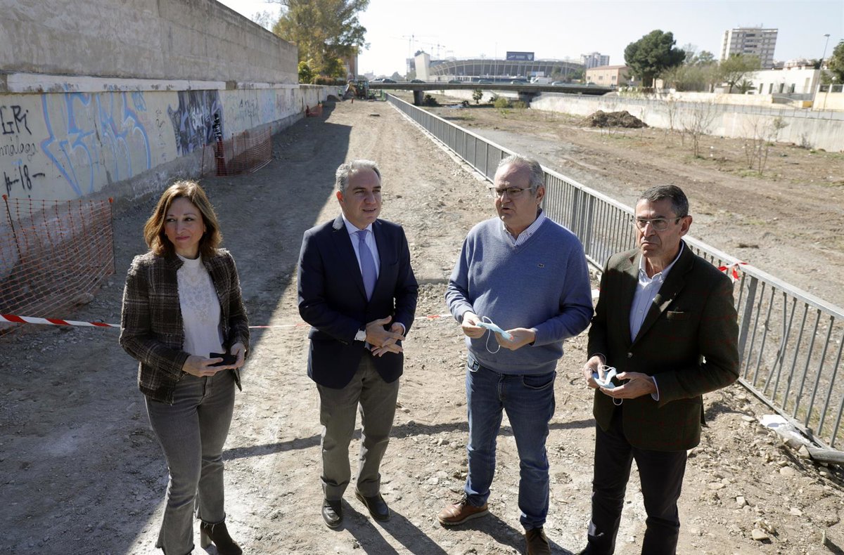 El consejero de la Presidencia, Administración Pública e Interior de la Junta de Andalucía, Elías Bendodo, ha visitado este viernes las obras que se están ejecutando en el cauce del río Guadalmedina, donde ha destacado que "los trabajos de desbrozamiento, desescombro y eliminación de plantas invasoras ya están listos al 85%".