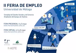 La Universidad de Málaga (UMA) acoge esta semana actividades, mesas redondas y conferencias en la segunda Feria del Empleo, que tendrá doble modalidad: presencial y virtual y cuyo objetivo es acercar a los estudiantes universitarios y titulados de todo tipo de perfiles académicos a empresas y entidades, con la finalidad de presentarles ofertas de trabajo y prácticas.