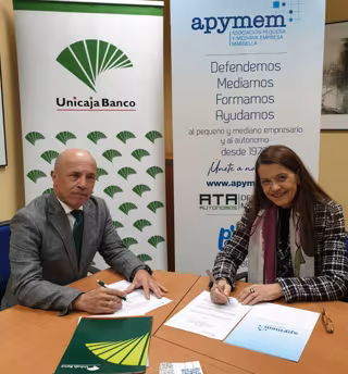 El convenio, que ha sido firmado por el director regional de Málaga Costa de Unicaja Banco, Francisco Javier Prieto García, y la presidenta de Apymem, Montserrat Pijoan Vidiella, persigue facilitar el desarrollo de la actividad de las pequeñas y medianas empresas de Marbella, "determinantes para la dinamización de la economía y la creación de empleo en el municipio".